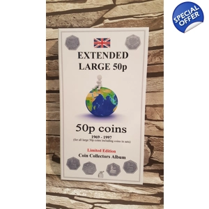 1969-1997 50p Large Standard UK Coin Album COINS NOT INCLUDED! Limited series to 5 00 pieces only! (random serial number supplied) QTY of coins for you to collect: 14